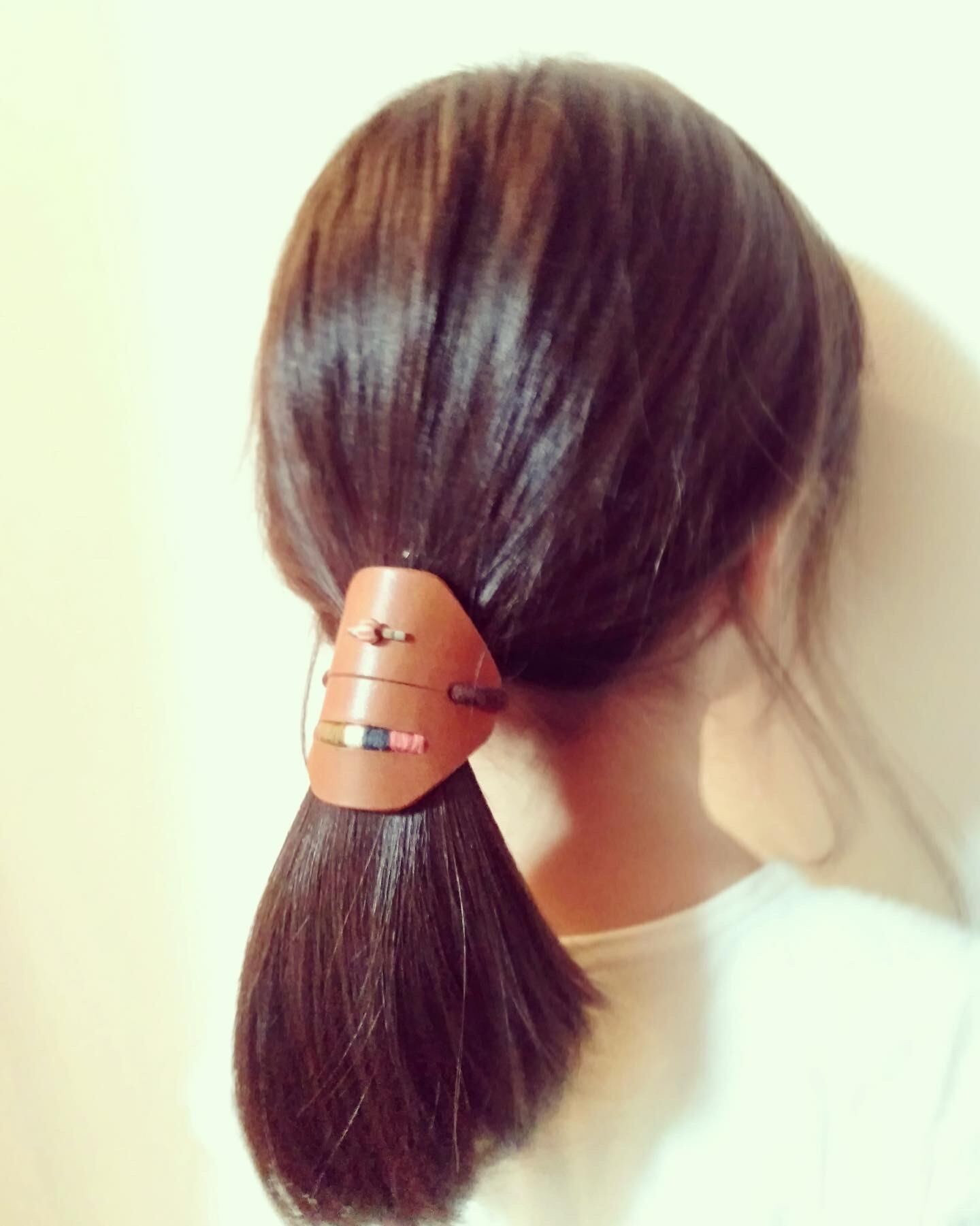 レザーの下にゴムの結び目を隠せるのでこれだけでヘアアレンジ完了!